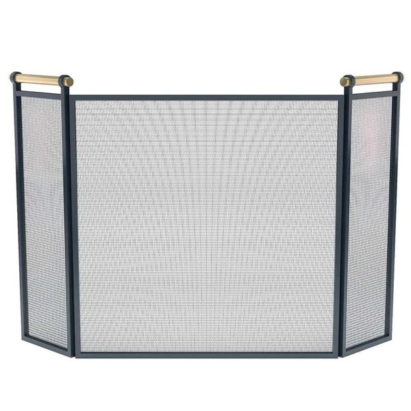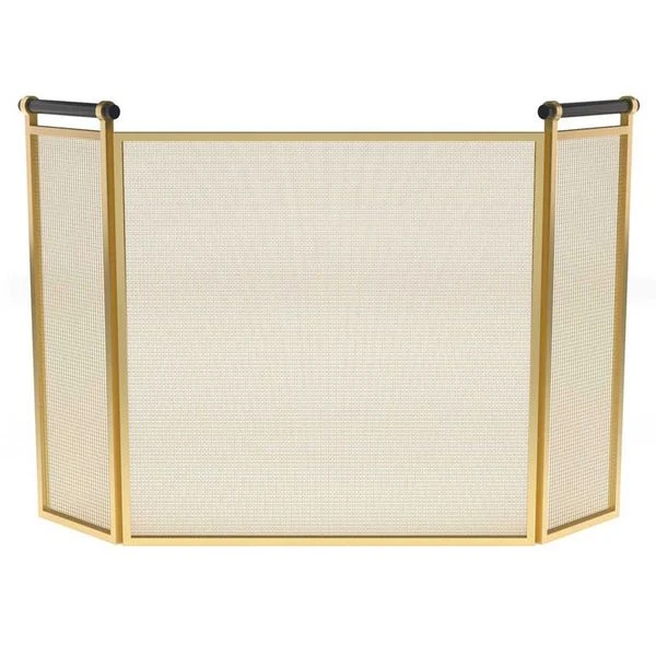 The Pilgrim Calabar Tri-Panel Mesh Screen adds a unique flair to your hearth or fireplace. Choose from either matte black construction with brass accent handles or fully brass construction with contrasting black handles. Both options are sleek, clean, and durable. Heavy-duty, tightly-woven wire ensures no ash or cinders will slip past Pilgrim’s special mesh screens to damage your floors. Each Pilgrim Calabar Tri-Panel Mesh Screen is handmade by expert craftsmen and comes with Pilgrim’s lifetime quality guarantee. |